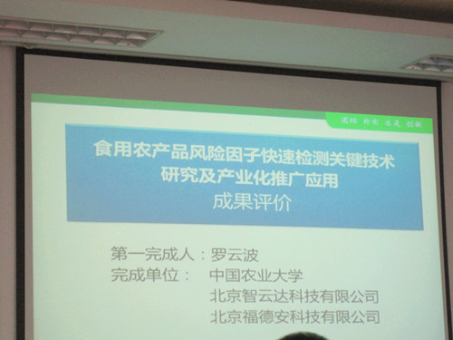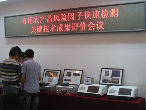 2014年8月31日上午,在中國農(nóng)業(yè)大學(xué)食品學(xué)院二樓會(huì)議如期成功舉辦了“食用農(nóng)產(chǎn)品風(fēng)險(xiǎn)因子快速檢測關(guān)鍵技術(shù)成果評價(jià)會(huì)”。該會(huì)議由農(nóng)業(yè)部中國農(nóng)學(xué)會(huì)組織,會(huì)議評審專家組由中國工程院孫寶國院士擔(dān)任組長,由天津科技大學(xué)校長王碩擔(dān)任副組長,另有農(nóng)科院加工所等科研院所及高校的專家參加。