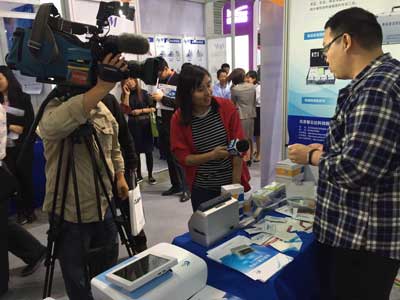 展位前擁擠不斷的人群更是吸引了東方衛(wèi)視的記者朋友的眼球,來到北京智云達(dá)展位前,對(duì)快檢試劑盒操作及常見食品檢測等問題進(jìn)行現(xiàn)場采訪。