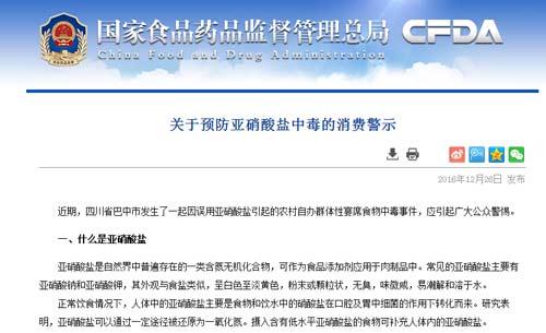 本文關(guān)鍵詞:四川 30人 亞硝酸鹽 中毒 食藥總局