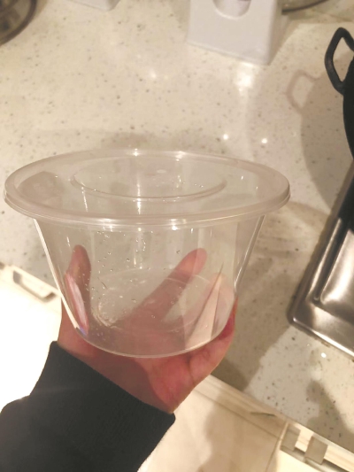 在確認(rèn)價格和重量后,男店員開始給牛肉切塊,當(dāng)屠先生拿到裝盒的鹽水牛肉后發(fā)現(xiàn),盒子很沉,盒子似乎要占很多重量。連續(xù)觀察多位排隊(duì)買熟食的居民后屠先生又發(fā)現(xiàn),只要來該店買熟食,店家都是將盒子與熟食一起稱重,也就是盒子都被當(dāng)作熟食稱重后賣給居民。