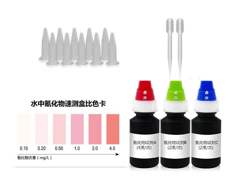 水中氰化物與檢測(cè)試劑反應(yīng)生成紅色化合物,含量越高紅色越深。