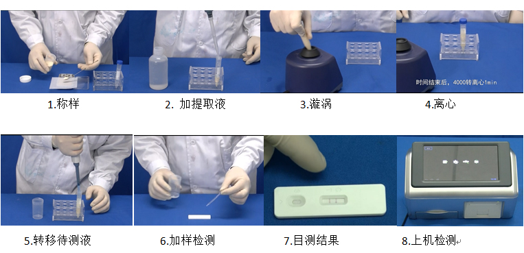 本產品用于快速檢測糧食、谷物以及飼料中的玉米赤霉烯酮,靈敏度為100 μg/kg,整個檢測過程只需要5分鐘,適用于各類企業及檢測機構。
