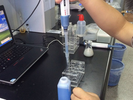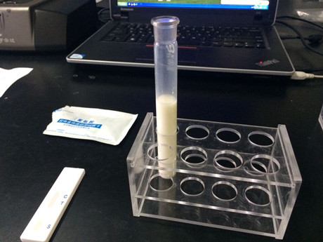 2、用干燥、潔凈的比色管或適當容器盛放奶粉,用純凈水1:10稀釋(1份奶粉+10份純凈水),溶解后用于檢測。