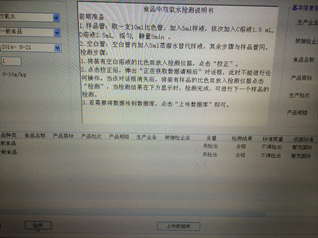 3、倒入比色皿中,置于PCS多功能食品安全檢測儀中檢測。檢測結果:兩個樣品均未檢出雙氧水