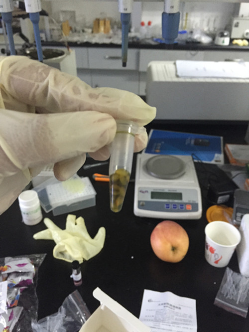 首先我們用小離心管裝15粒大米,加入我們檢測(cè)試劑。