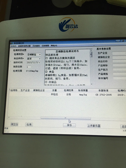 結果顯示亞硝酸鹽含量未超標,符合國家標準。