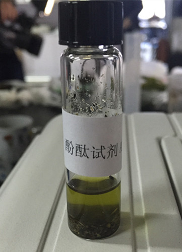 若溶液出現(xiàn)粉紅至紫紅色,則判為陽性(+);否則判為陰性(-)。結果顯示,樣品中不含有酚酞。