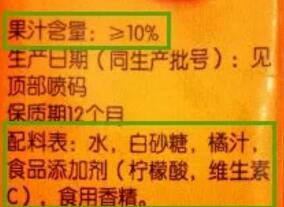 例如,我們看到這款產品類別叫“橘子汁飲料”,說明并非純果汁。