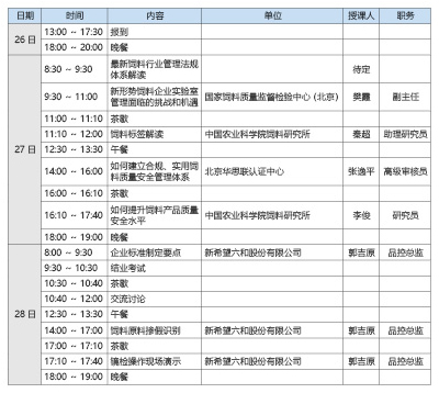 為幫助企業(yè)深入學習理解飼料法律法規(guī),了解飼料行業(yè)監(jiān)督檢查情況,使飼料行業(yè)從業(yè)者規(guī)范飼料生產(chǎn)、經(jīng)營行為,強化管理,滿足飼料企業(yè)對新法規(guī)和檢測實驗室管理的需求,解決目前飼料企業(yè)工作中遇到的疑難問題,北京智云達科技股份有限公司將于2018 年12 月26 日~28 日在北京舉辦“飼料行業(yè)法律法規(guī)培訓(xùn)班”?,F(xiàn)將有關(guān)事宜通知如下: